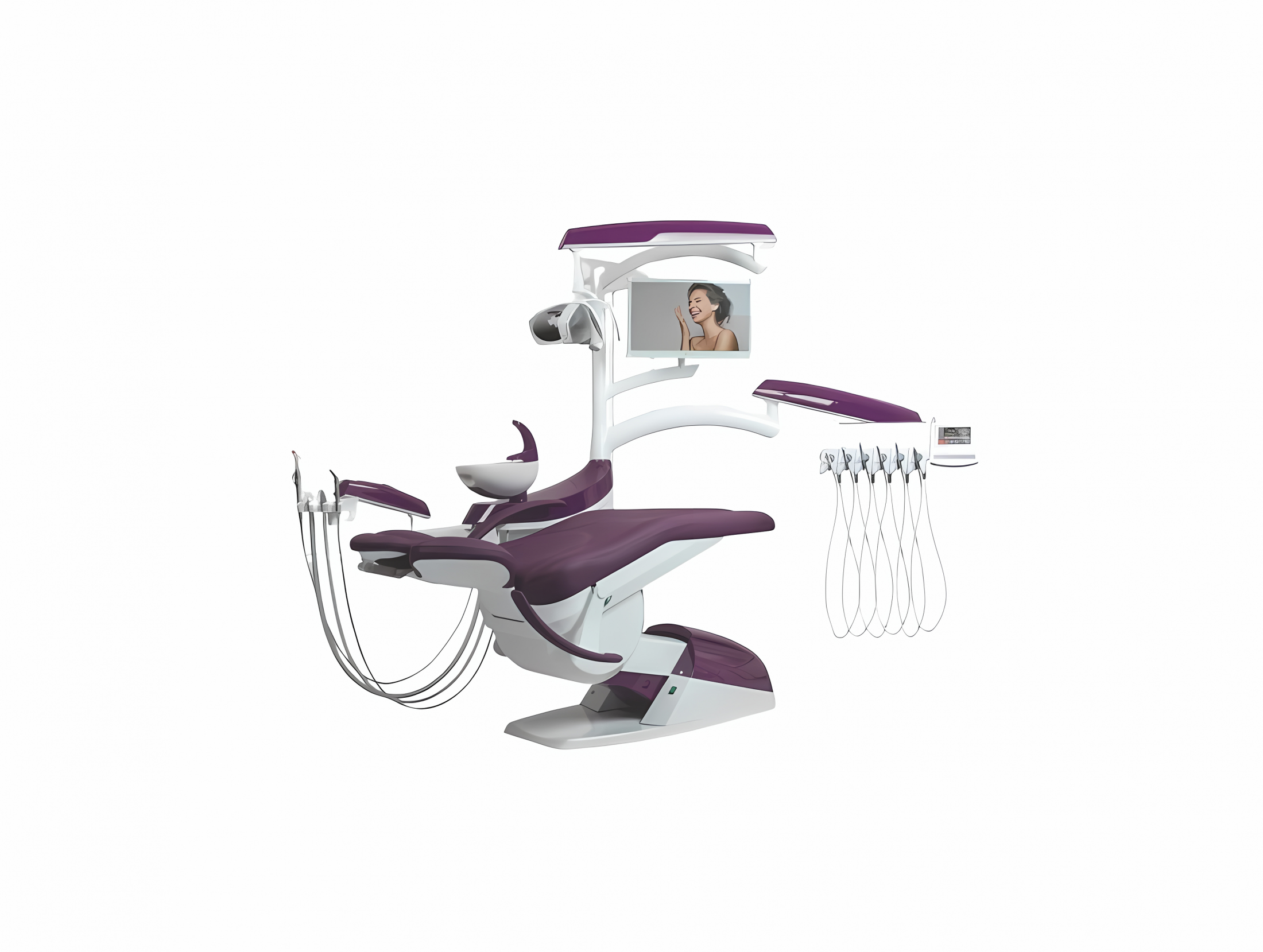 Stolík asistenta - pre 2 alebo 4 nástrojové hadice (hadica odsliňovača, hadica odsávačky, striekačka, polymerizačná lampa, intraorálna kamera), voliteľné rôzne typy ramien: jednoduché rameno, predĺžené otočné rameno alebo pantografické rameno