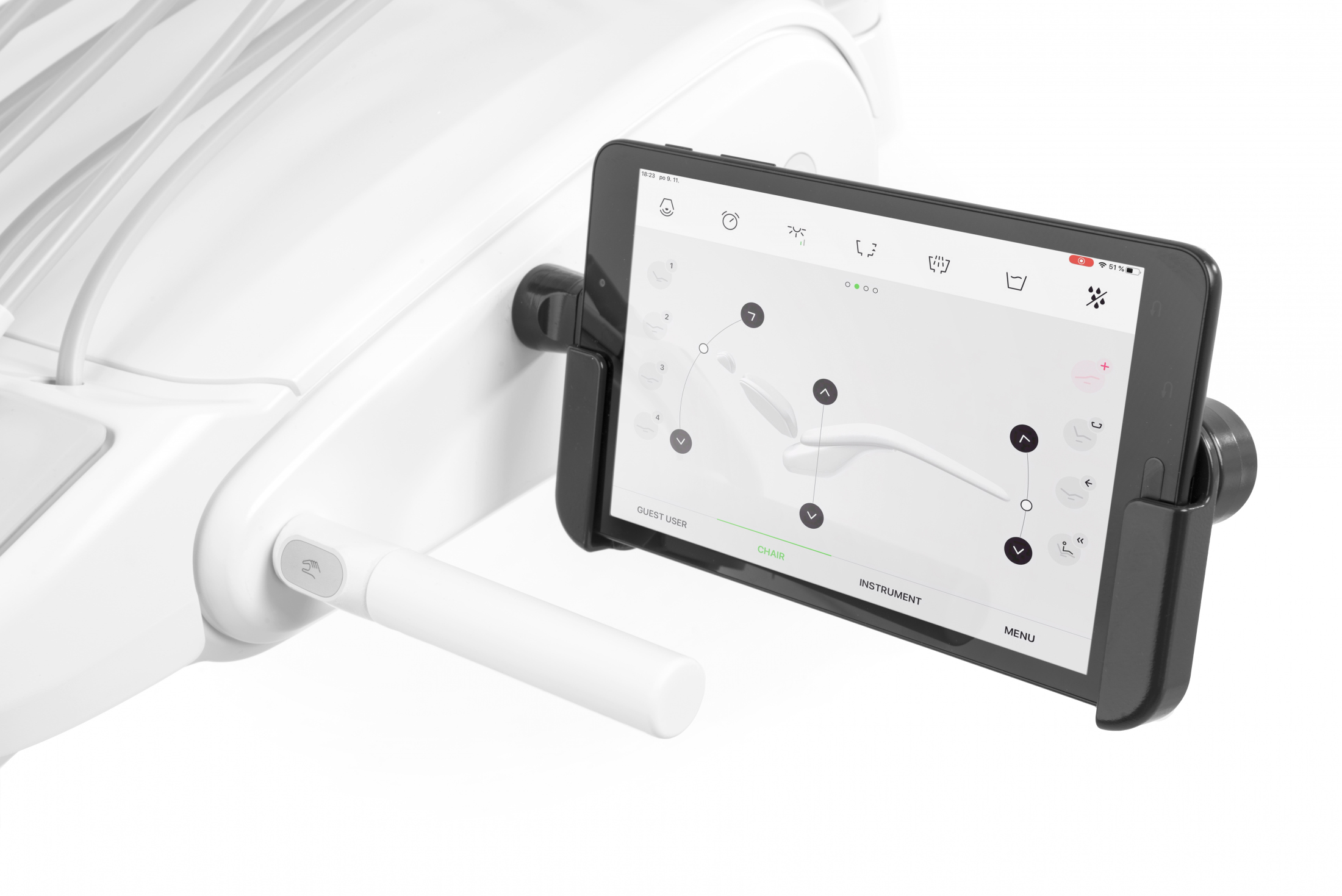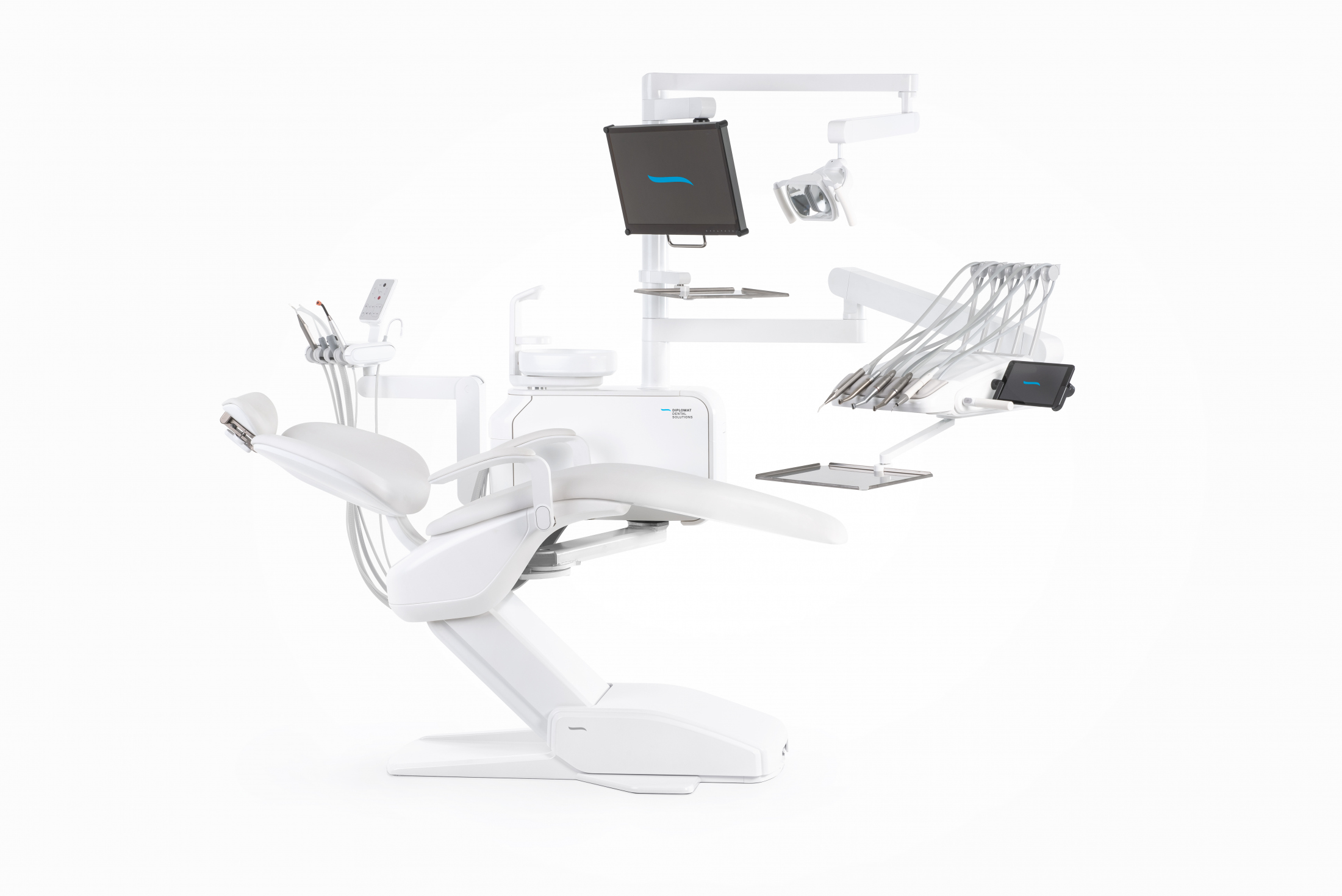 - Intuitívne ovládanie: Aplikácia Diplomat Connect vám pomáha jednoducho ovládať vašu stomatologickú súpravu. Nastaviť si môžete vlastnostni nástrojov, svetiel, hygienu a omnoho viac. Pár kliknutiami si môžete naprogramovať vlastné prednastavenie, ktoré budú vyhovovať vašej práci.